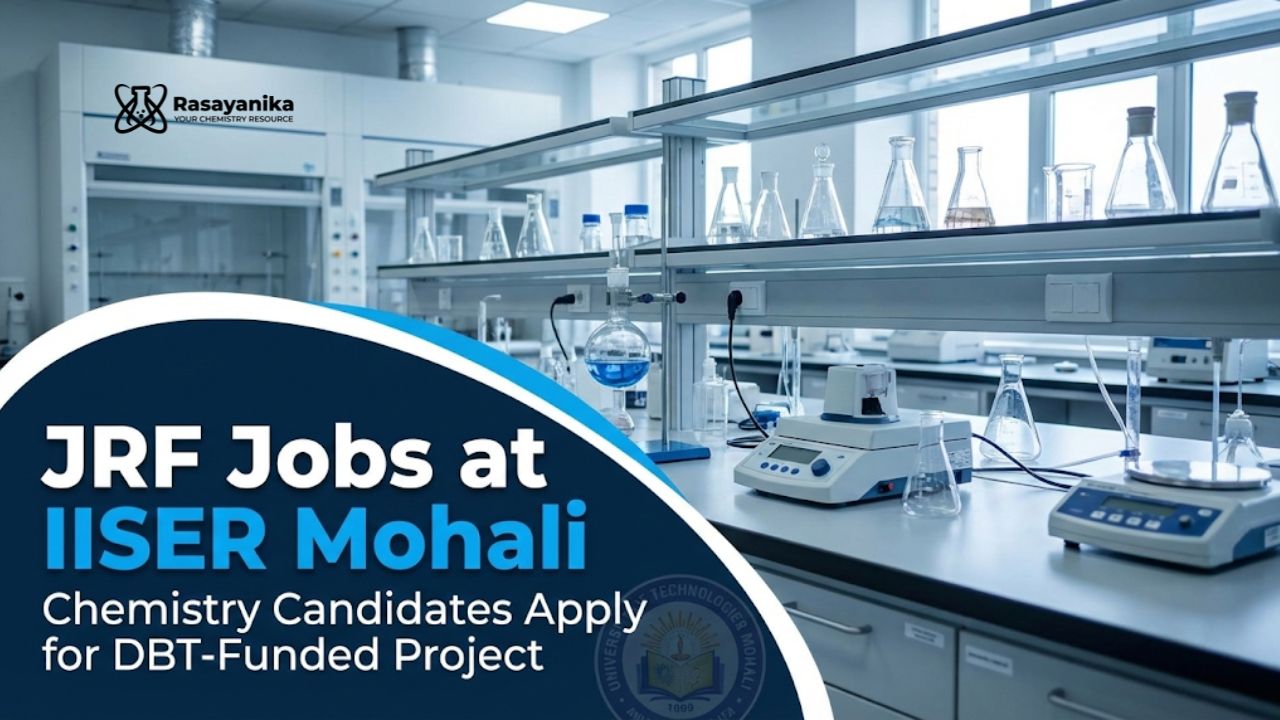 JRF Jobs at IISER Mohali | A walk-in interview is being conducted for a Junior Research Fellow (JRF) position under a DBT-funded research project at IISER Mohali. The project focuses on advanced microbial CO₂ fixation pathways, metabolic profiling, and bioprocess optimization, offering an excellent research opportunity for candidates with a background in biotechnology, microbiology, biosciences, or chemical engineering. Interested candidates are invited to apply for the exciting opportunity at IISER Mohali.