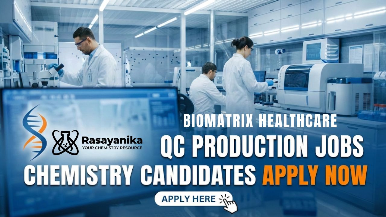 QC Production Jobs at BioMatrix Healthcare | Chemistry Candidates Apply Now