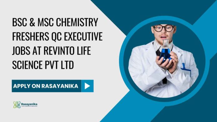 Chemistry Freshers QC Executive Jobs at Revinto Life Science Pvt Ltd, Apply on Rasayanika is a great opportunity for BSc and MSc Chemistry graduates looking to start their careers in pharmaceutical quality control. This opening is ideal for freshers and early-career professionals seeking hands-on experience in raw material testing, GMP-compliant laboratory operations, and documentation processes. Revinto Life Science Pvt. Ltd. offers a structured work environment, exposure to regulated pharma practices, and a solid foundation for long-term growth in QC and analytical roles.