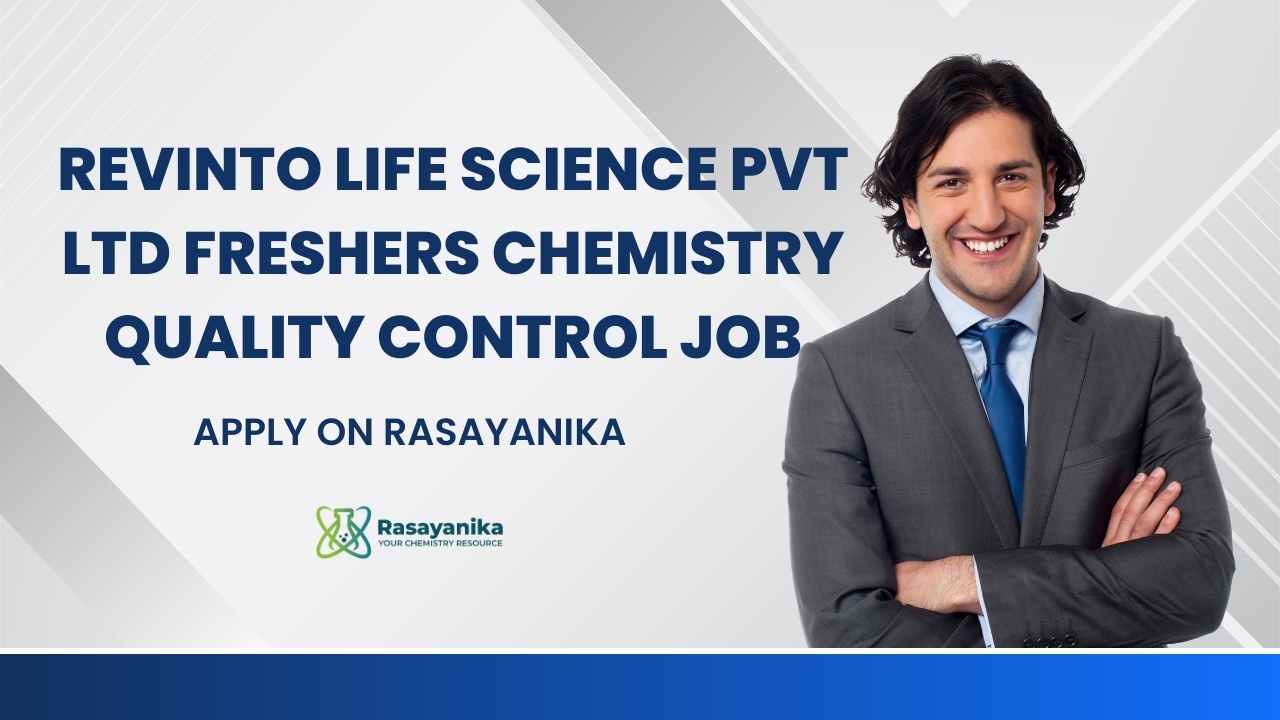 Looking for an entry-level opportunity in pharmaceutical quality control? Freshers Chemistry Quality Control Job at Revinto Life Science Pvt Ltd, Apply on Rasayanika is a great opening for B.Sc / M.Sc Chemistry graduates aiming to begin their careers in the pharma industry. Revinto Life Science Pvt. Ltd. is hiring Quality Control (QC) Executives for raw material testing at its Karnataka facility, offering hands-on exposure to GMP-compliant laboratory operations, documentation, and analytical procedures. This role is ideal for freshers and early-career professionals seeking practical QC experience in a regulated pharmaceutical environment.