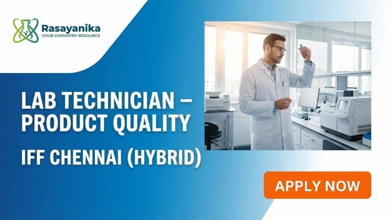 Are you looking for Lab Technician jobs or BSc Chemistry jobs in Chennai? International Flavors & Fragrances has announced a new opening under IFF Careers for the position of Lab Technician – Product Quality in Chennai (Guindy). This IFF recruitment opportunity is ideal for candidates with a background in Chemistry, Food Science, or Engineering who want to build a career in quality management, SAP systems, and global product compliance within a leading multinational organization.