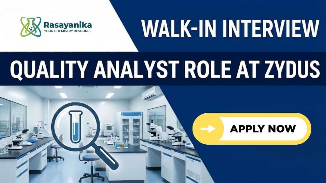 Chemistry Career Opportunity | QC Analyst at Zydus Lifesciences | Walk-In Drive