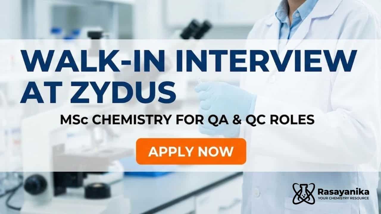 MSc Chemistry Job Walk-In Interview at Zydus Lifesciences | Apply Now