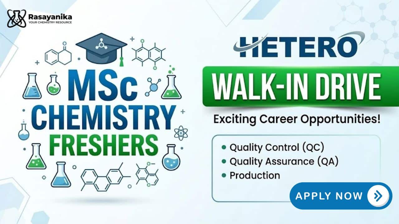MSc Chemistry Freshers Job at Hetero | Attend the Walk-in Drive
