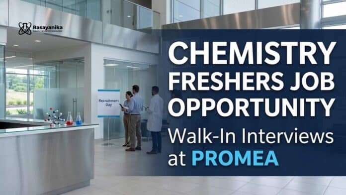 This Walk-in Drive by Promea Therapeutics Pvt Ltd is a great opportunity for candidates looking for a Chemistry Freshers Job and an MSc Chemistry Job.