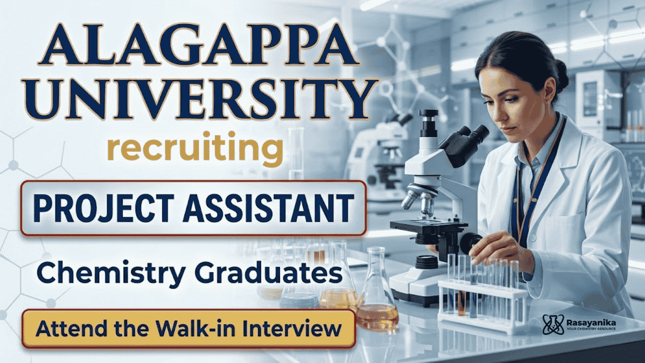 Searching for Chemistry Jobs with quick hiring? This walk-in interview brings an excellent Chemistry vacancy at Alagappa University for candidates interested in research roles. Join a government-funded project and gain valuable experience in computational and bioinformatics research.