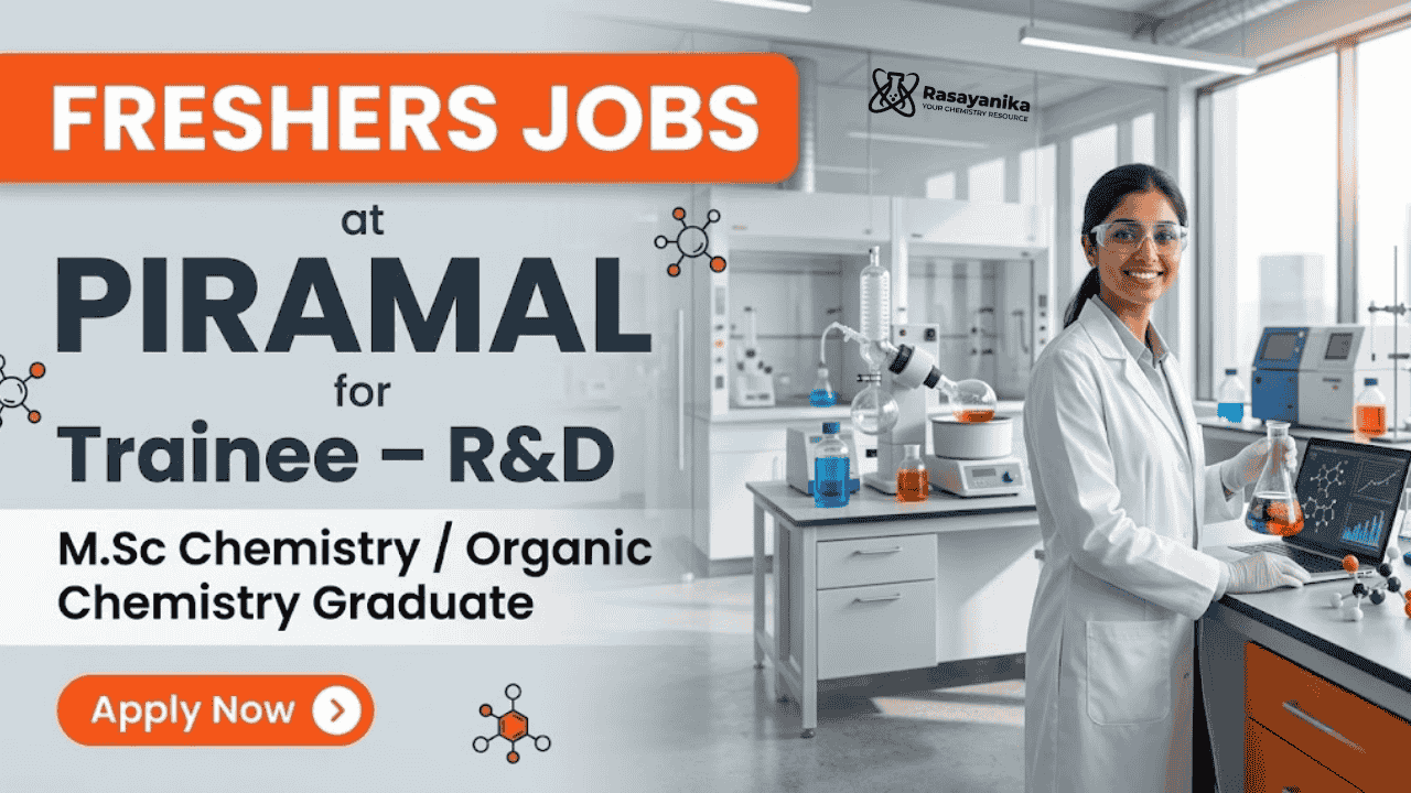 Chemistry Fresher Jobs are opening strong career opportunities through Piramal Career for the role of Trainee – R&D in Chennai. This trainee jobs opportunity is designed for M.Sc Chemistry and Organic Chemistry freshers who want to build a strong foundation in research, synthesis, and laboratory operations. At Piramal, candidates will work in a regulated R&D environment following cGMP and GLP standards, supporting reaction execution, analytical interpretation, and scale-up activities. If you are searching for Chemistry Fresher Jobs that provide hands-on lab experience and industrial exposure, this role is an excellent starting point in the pharmaceutical R&D sector.