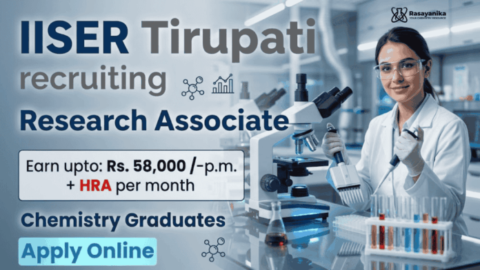 Research Associate Job at IISER Tirupati | Chemistry Research Jobs | Earn upto: Rs. 58,000 /-p.m. + HRA | Apply Now