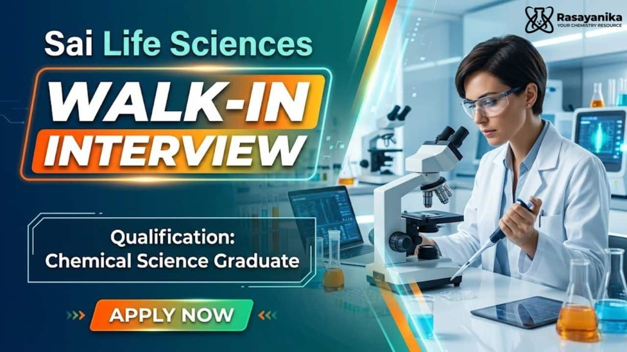 Don’t miss this opportunity to advance your career in R&D Jobs and PhD Chemistry Jobs at Sai Life Sciences Careers. Whether you are an MSc, PhD, or BTech graduate, this walk-in interview in Mumbai offers a platform to apply your skills in chemical synthesis, analytical R&D, and process development. Join a globally recognized CRMO known for innovation, collaboration, and excellence in research. Take the next step in your Chemistry Job journey and contribute to cutting-edge projects that make a real impact in the pharmaceutical and biotechnology industries.