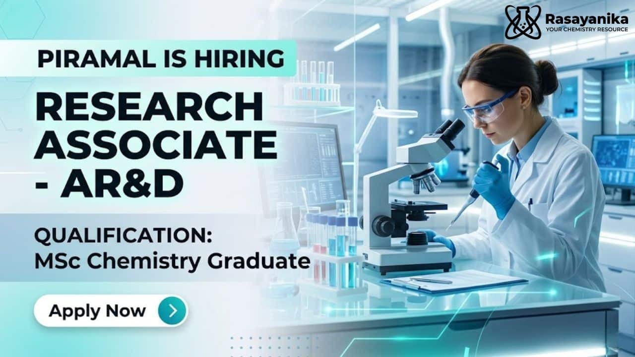 Looking for a Research Associate job in Telangana under a reputed Piramal Career? This MSc Chemistry Job offers an exciting role in Analytical Research & Development (AR&D) for candidates skilled in HPLC, GC, and analytical method development. If you are passionate about pharmaceutical R&D, data accuracy, and laboratory excellence, this role is perfect to kickstart or grow your career. Don’t miss this high-potential Research Associate AR&D job—apply now!