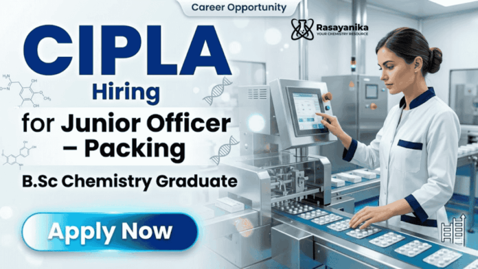 Searching for BSc Chemistry Jobs? This Cipla Careers opportunity offers a Junior Officer Job in packing operations. Gain hands-on experience in documentation, cGMP compliance, and production processes. Ideal for candidates looking to build a strong foundation in pharmaceutical manufacturing and advance their career in a reputed pharma company.