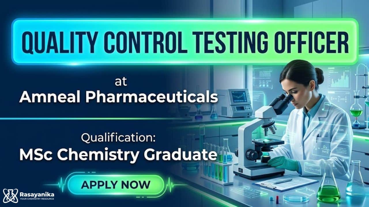 Looking for a stable QC Officer Job in the pharma industry? This Quality Control Officer role at Amneal Jobs in Gujarat is perfect for candidates seeking MSc Chemistry Jobs. Work in a regulated laboratory environment, gain experience in analytical testing, GLP practices, and LIMS systems, and build a strong career in pharmaceutical quality control.