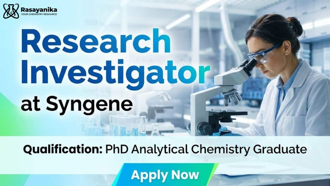 Looking for a PhD Chemistry Job or a high-growth Research Investigator Job in Bangalore? This Syngene Job opportunity offers a rewarding role in Analytical Research and Development under GMP environment. Ideal for candidates with strong analytical chemistry background, this role provides hands-on experience in HPLC, stability testing, and pharmaceutical R&D. If you are aiming for Analytical Chemistry Jobs or GMP jobs in Bangalore, this is a great opportunity to work with a leading global research organization and advance your career in pharmaceutical sciences.