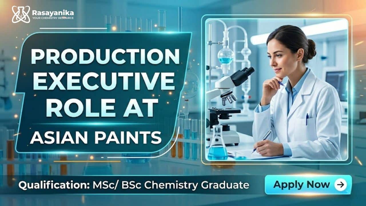 This Chemistry Job at Asian Paints career is an excellent opportunity for candidates looking to build a future as a Production Executive. With strong exposure to manufacturing, SAP systems, and GMP compliance, this role offers long-term growth. If you are a BSc Chemistry Job or MSc Chemistry Jobs aspirant, this is your chance to join a leading company and advance your career in production and operations.