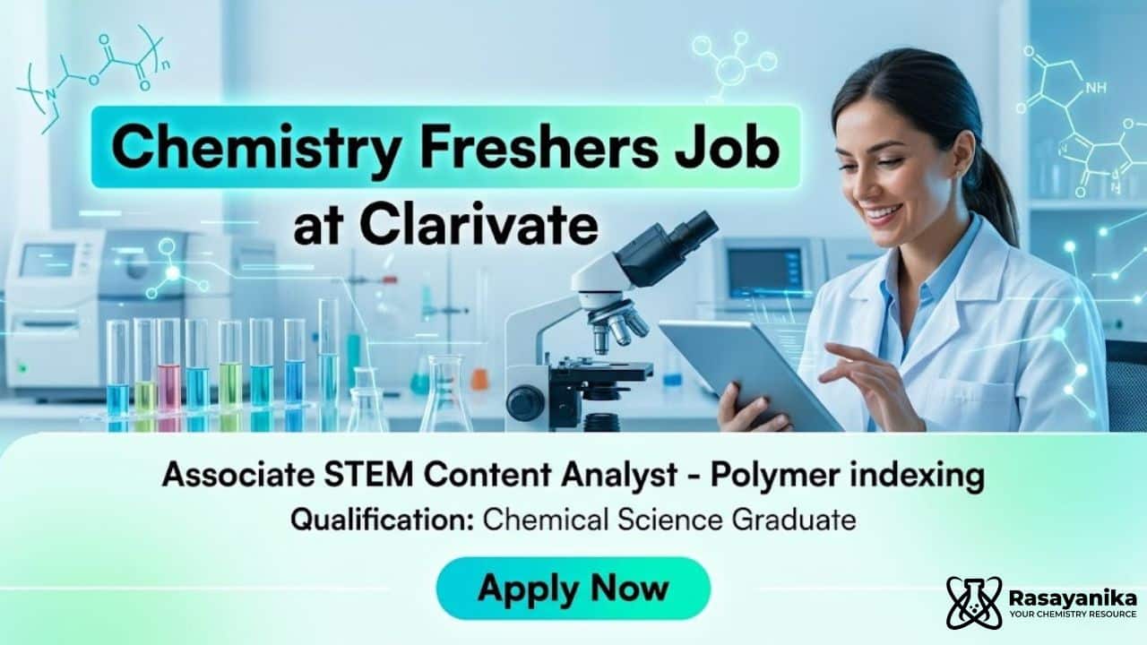 This Associate STEM Content Analyst Job at Clarivate Careers is an excellent opportunity for candidates seeking an MSc Chemistry Freshers Job in a global organization. With exposure to patent analysis, polymer science, and data-driven research, this role offers strong career growth in Chemistry Jobs and intellectual property fields. If you are detail-oriented and passionate about scientific content, this position can be your gateway to a rewarding career.