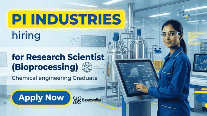This opportunity in Chemical engineering Jobs at PI Industries careers is ideal for professionals aiming to build a strong career in research and innovation. With exposure to advanced bioprocessing techniques and real-world industrial applications, this role in R&D Jobs provides valuable experience and growth potential. It is a great platform for candidates looking to contribute to impactful research and develop expertise in process development and fermentation technology.