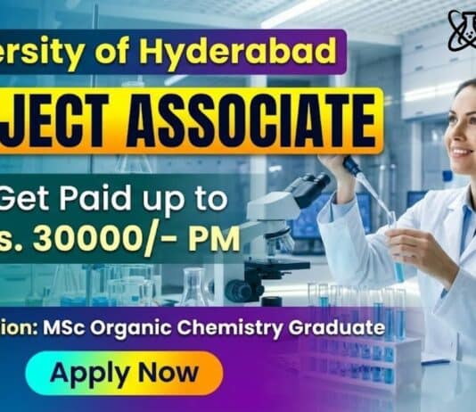 Junior Research Fellow Hiring at UoH Careers | Research Chemistry Jobs | Earn: Rs. 37,000/- per month + HRA