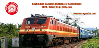 Govt Indian Railways Pharmacist Recruitment 2021 – Salary Rs 47,000/- pm