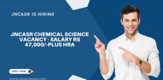 JNCASR Chemical Science Vacancy – Salary Rs 47,000/-plus HRA