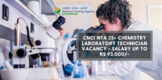 CNCI-NTA 25+ Chemistry Laboratory Technician Vacancy – Salary up to Rs...
